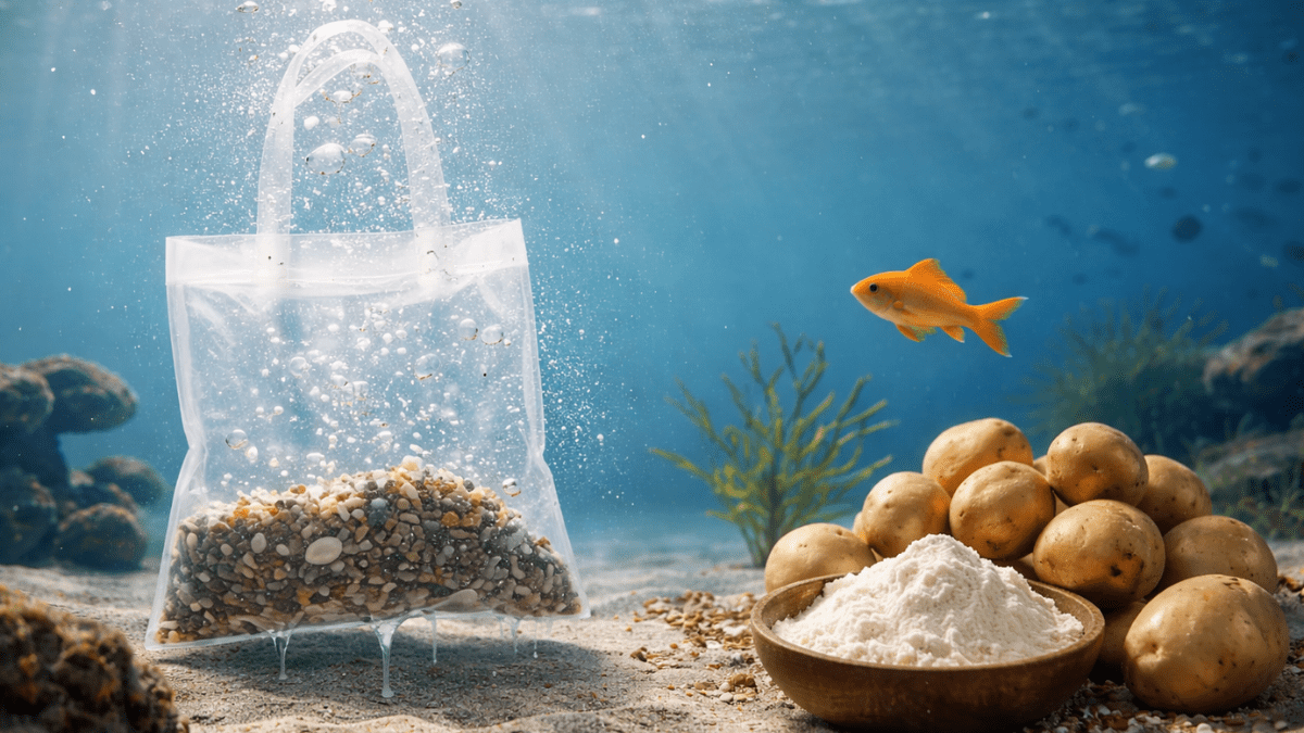 Unlike plastic bags, these starch-based bags do not remain in rivers or oceans. Plastic bags can drift for years, trapping fish and birds or being eaten by mistake. Potato starch bags avoid this problem entirely because they disappear in water rather than lingering.